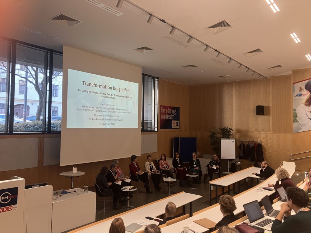 Over 100 participants from Germany, Switzerland, Luxembourg and Austria took part – both in person and online – in the conference on 6 and 7 November 2025, which was organised in cooperation with GewissS (Society for Scientific Writing), the CTL at the University of Vienna and the Writing Centre at FHWien der WKW. The aim of the event was to highlight the complexity of the transformation processes surrounding academic writing – at the individual, organisational and structural levels. The Call for Participation provided an insight into the thematic focus of the conference in advance. The conference programme is available here.