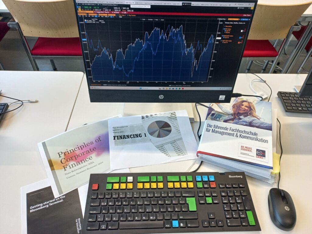 The Bloomberg terminals available at FHWien der WKW are already being used successfully in several courses. They provide access to global financial and economic data, analyses, and the latest news, thereby supporting a practical deepening of the course’s content. Students work directly on the terminals in topic-specific exercises and learn to research, analyze, and interpret data for specific economic issues in a technically sound manner.