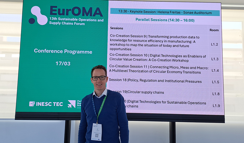 In March, Clemens Löffler, researcher at the Department of Management, presented his paper “Who should collect? Reverse Channel Design for Remanufacturing under Supplier Competition” at the 13th EurOMA Sustainability Forum 2026 in Porto, Portugal.