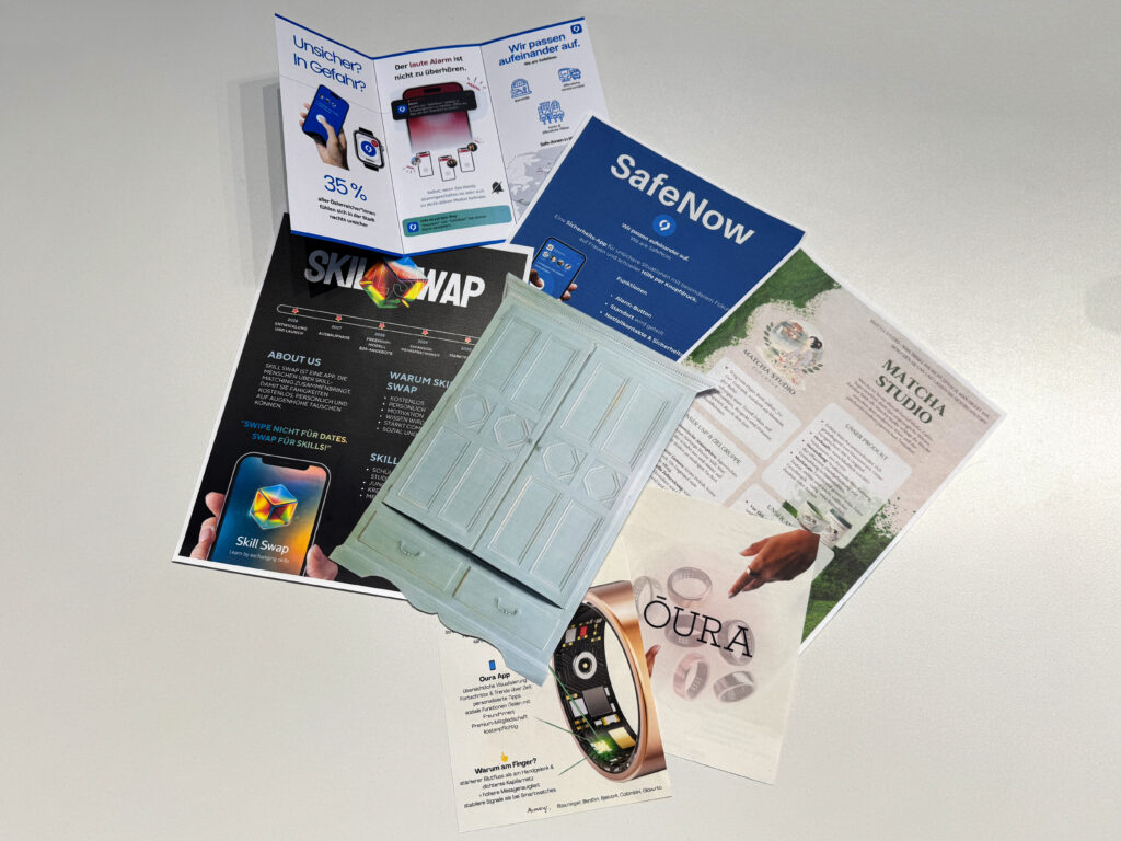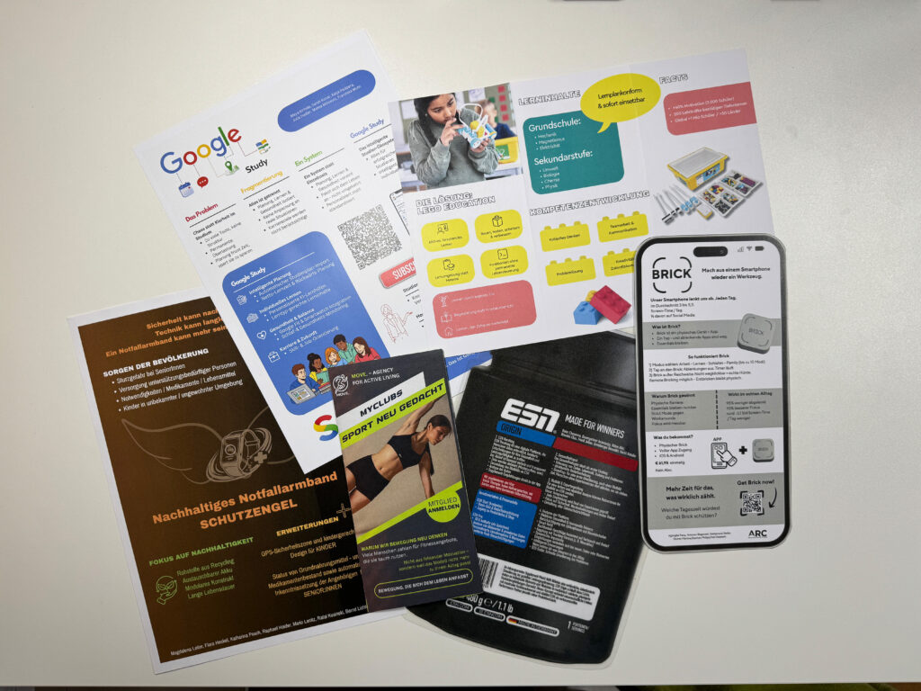 In einigen Präsentationen wurden auch eigens gedrehte Videoclips und durchgeführte Umfragen ergänzend eingebaut. Die vielfältigen Themen reichten unter anderem von innovativen Apps, Sicherheitskonzepten, Lehr- und Lerninnovationen, dynamischen Fitnessangeboten, Skills-Plattformen über Wearables, Matcha-Teehaus-Konzepten bis hin zum nachhaltigen Umgang mit Kleidung.