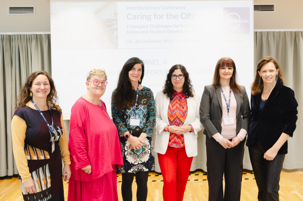 Von 24. bis 26. September 2025 fand an der FHWien der WKW die internationale Fachtagung Caring for the City statt. Drei Tage lang drehte sich alles um die Frage, wie Stadt- und Tourismusentwicklung sektorenübergreifend inklusiv und zukunftsfähig gestaltet werden können. Die Konferenz brachte ExpertInnen aus Forschung, Verwaltung, Planung und Praxis zusammen, die über neue Formen nachhaltiger Stadtgestaltung & Tourismusformen diskutierten und dabei den Begriff des „Caring“ – der Achtsamkeit gegenüber Nachbarschaften, BewohnerInnen und Stadtteilen – in den Mittelpunkt stellten.