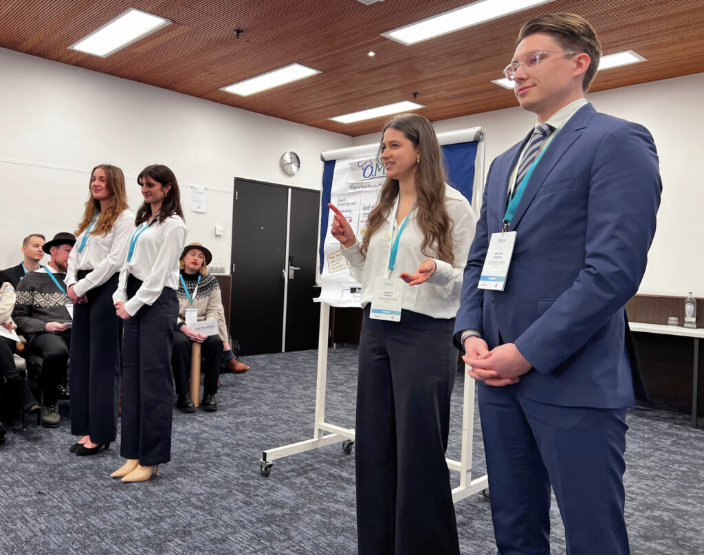 Das Gewinnerteam – Laura Viscuso, Anahita Shirbaz, Marlon Geserick und Veronika Sophia Ober – überzeugte mit dem Konzept „OMA – Opportunity for More Authenticity“.