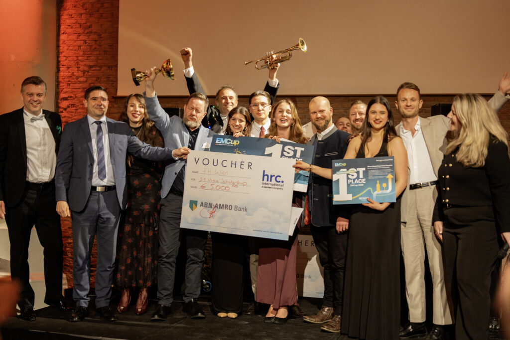Vier Studierende des Bachelor-Studiengangs Tourismus-Management der FHWien der WKW gewinnen den 18. European Mise en Place Cup (EMCup) in Amsterdam. Sie setzen sich gegen 28 Universitäten aus ganz Europa durch und holen den Titel nach Wien.