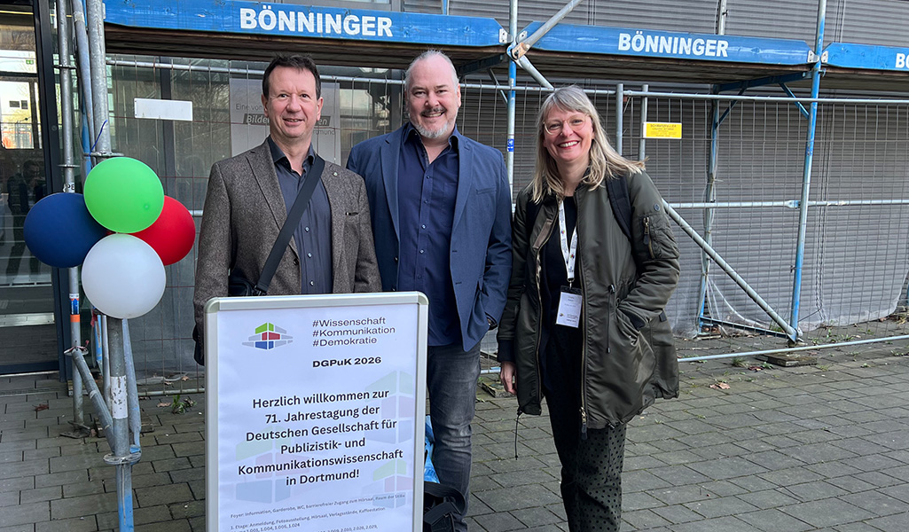 Im März traf sich die deutschsprachige Kommunikationsforschung zur Jahrestagung der Deutschen Gesellschaft für Publizistik- und Kommunikationswissenschaft (DGPuK) an der TU Dortmund. Gisela Reiter, Marian Adolf und Andreas Hess vom Department of Communication präsentierten die Ergebnisse einer aktuellen Studie mit dem Titel „Ich recherchiere mir das selbst zusammen“. In dieser Studie wurden Differenzierungspraktiken junger NutzerInnen bei journalistischen und journalismusähnlichen Medienangeboten untersucht.