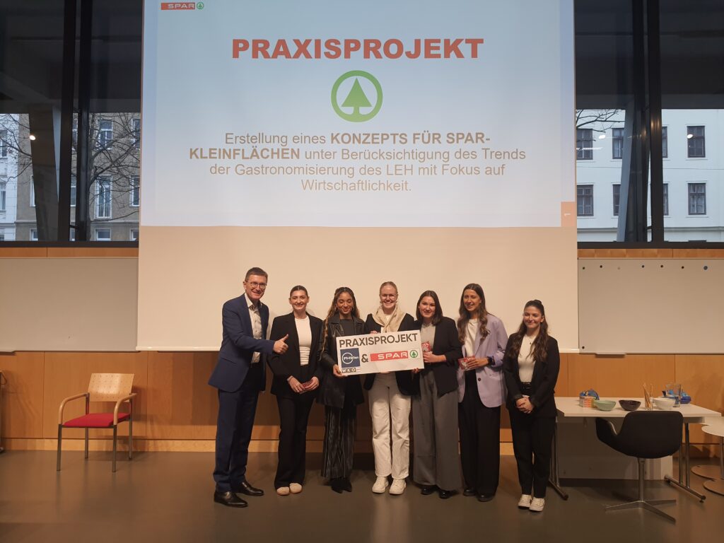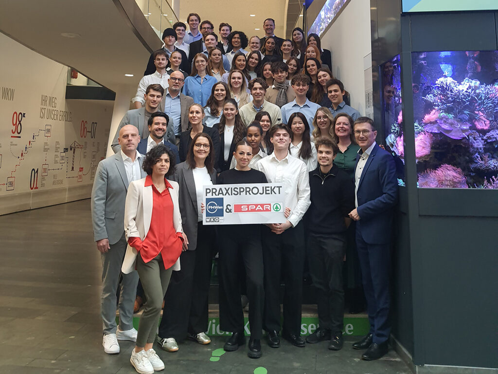 Die Vollzeit-Studierenden des Bachelor-Studiengangs Marketing & Sales (3. Semester) der FHWien der WKW entwickelten in ihrem ersten Praxisprojekt im Wintersemester 2025/26 kreative Ansätze zur Weiterentwicklung urbaner SPAR-Kleinflächen. Ziel des Projekts war es, Verkaufsflächen mit begrenztem Platzangebot zu modernen Genuss-Hotspots weiterzuentwickeln.