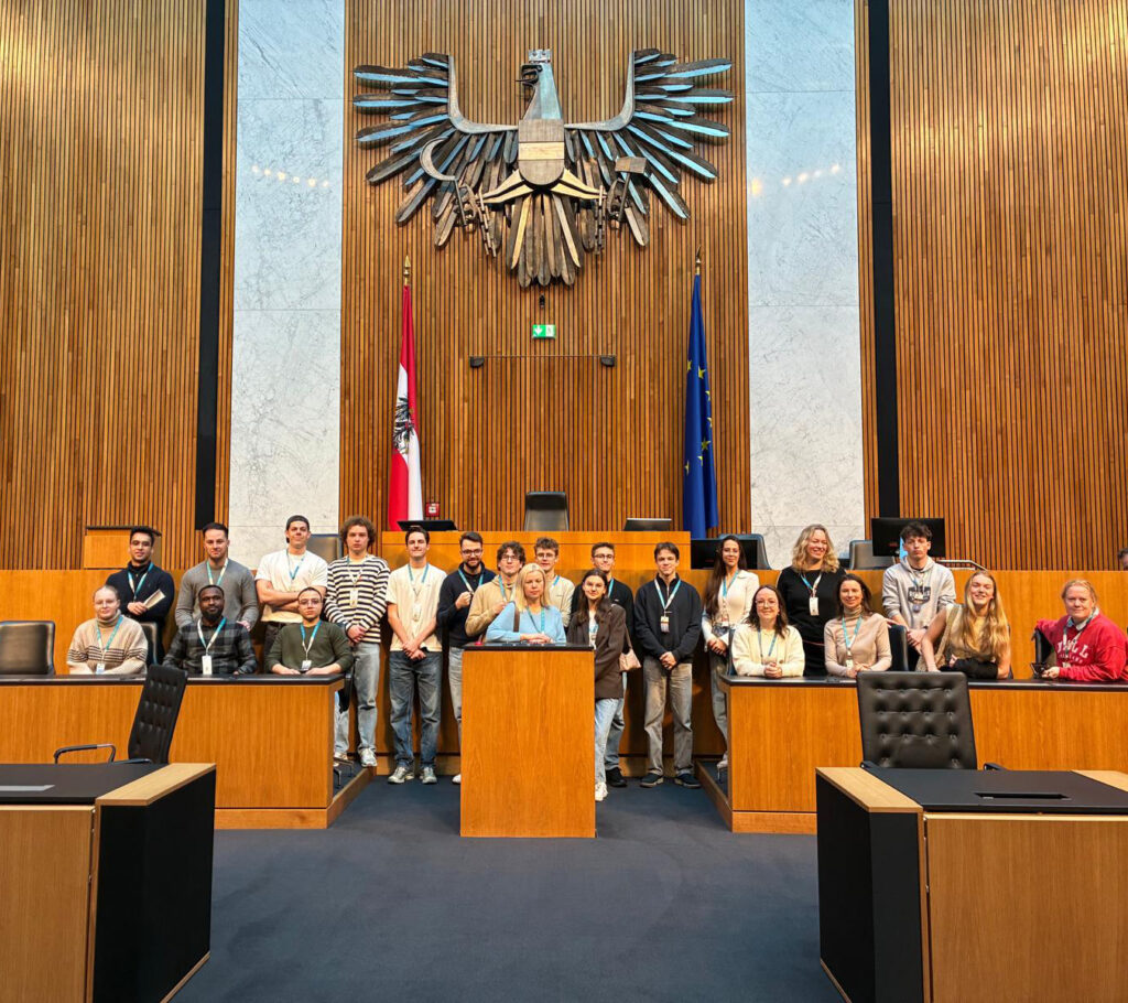 Abgerundet wurde das Programm durch einen Besuch des Parlaments sowie der Vereinten Nationen in Wien, einer Stadtführung und einem Heurigenbesuch in Grinzing. Herzlichen Dank an unsere Unternehmensführung-Entrepreneurship-Studierenden für die Mitgestaltung dieses Rahmenprogramms und tatkräftige Unterstützung bei der Umsetzung unserer innovativen Workshop-Idee!