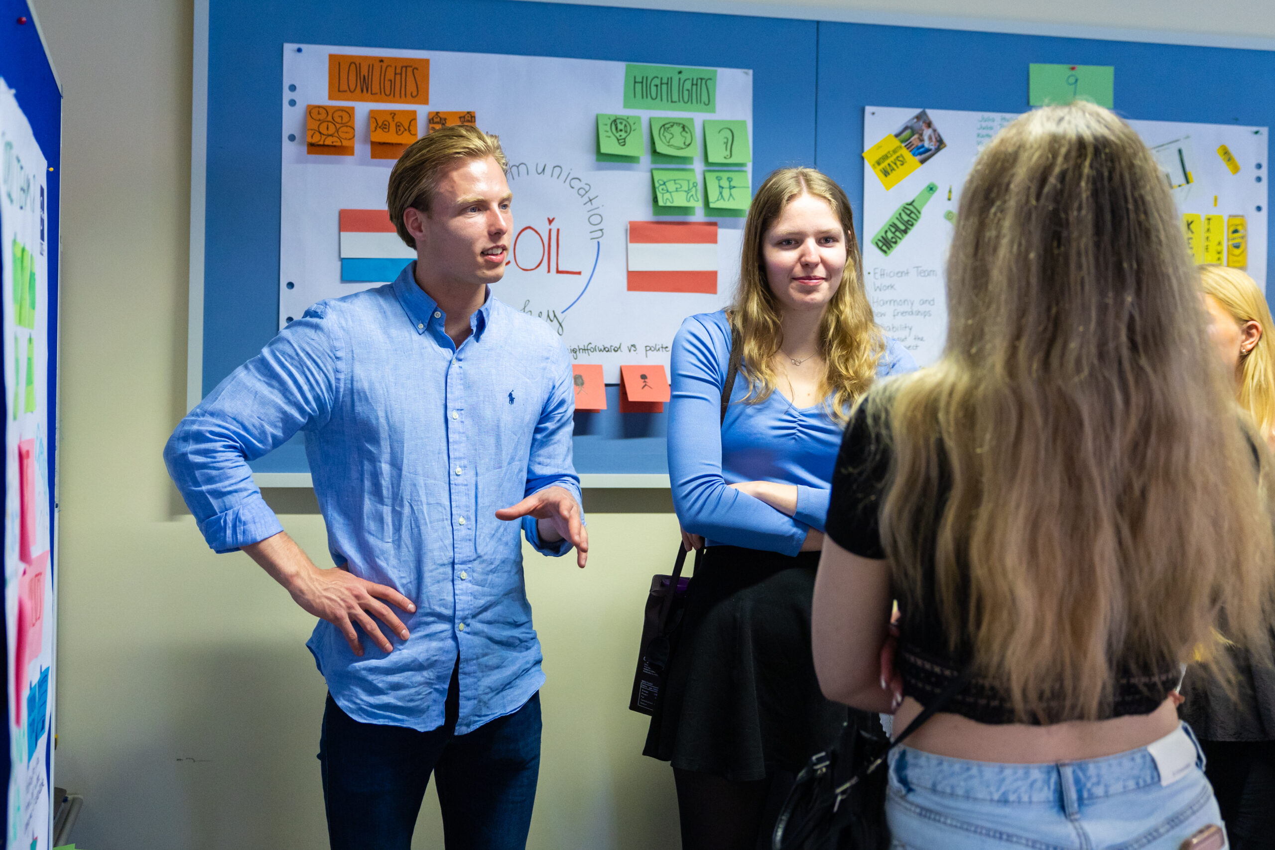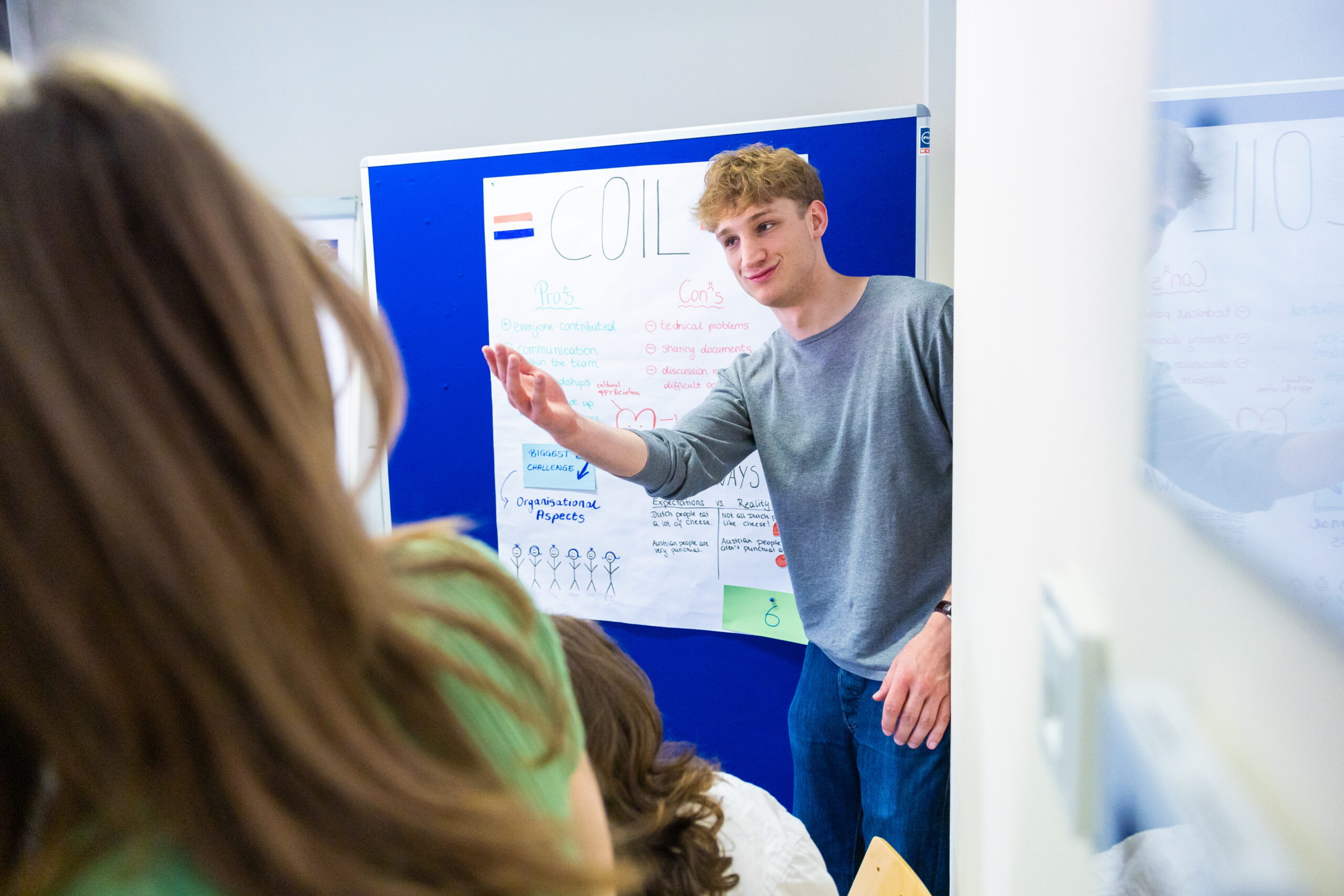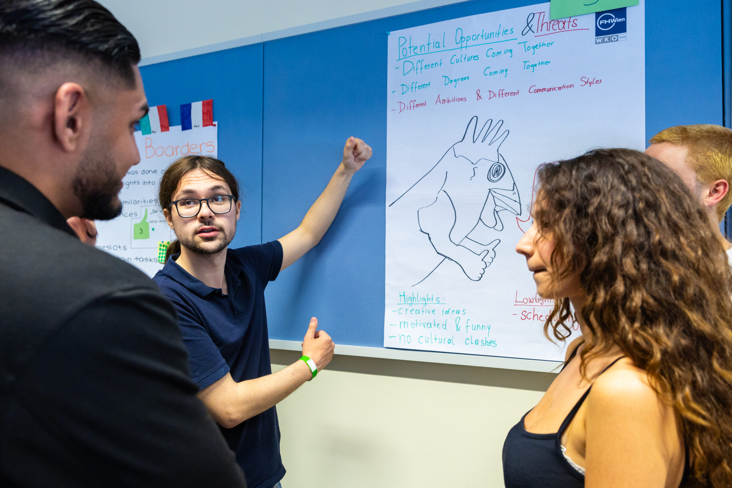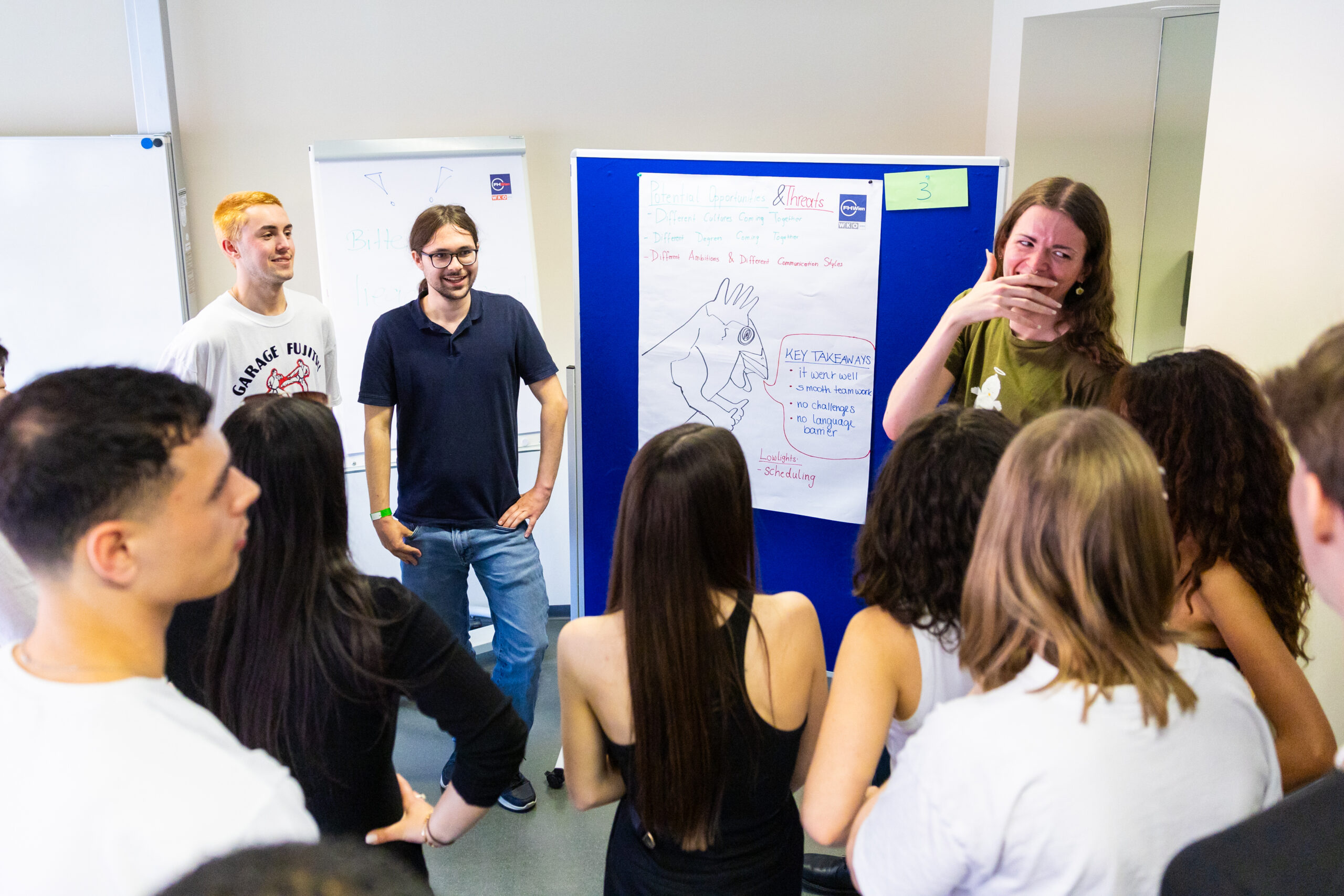 Schon mehrere Jahre hat sich der Studienbereich Communication Management dem internationalen Austausch mit der niederländischen Partnerhochschule in Den Haag verschrieben. Im Projekt „Collaborative Online International Learning“ (COIL) arbeiten Studierende in internationalen Gruppen gemeinsam an einem Thema. Gestartet wurde dieses Jahr mit Vorstellungsvideos, die die jeweiligen Gruppenmitglieder von sich gedreht hatten. In einem virtuellen Kickoff Anfang April lernte man sich danach im Online-Setting kennen und wurde mit der Aufgabenstellung betraut. In wöchentlichen virtuellen Treffen arbeiteten die Teams an ihren Projekten. Dabei wurden auch die kulturellen Unterschiede in Bezug auf die Zusammenarbeit analysiert. Zur Abschlusspräsentation der Ergebnisse Mitte Mai reisten die niederländischen Studierenden nach Wien. Dabei lernten sich die Teammitglieder dann schließlich auch persönlich kennen.