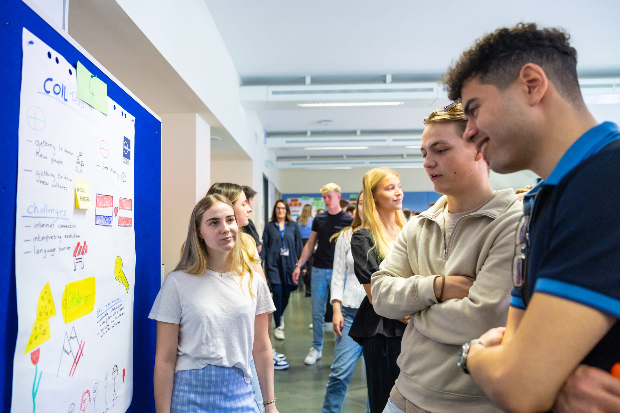 Die insgesamt neun Gruppen meisterten die Herausforderung einer länderübergreifenden virtuellen Gruppenarbeit mit Bravour und überzeugten auch bei den Posterpräsentation mit Kreativität und Einfallsreichtum. Das beste Poster wurde schließlich mit einem Preis ausgezeichnet. Unterstützt und gecoacht wurden die Studierenden von Simone Zwickl, Academic Expert & Lecturer im Bereich Strategic Communication Management, die seitens der FHWien der WKW das COIL-Projekt organisierte, sowie Carolien van Gent seitens der The Hague University of Applied Sciences.