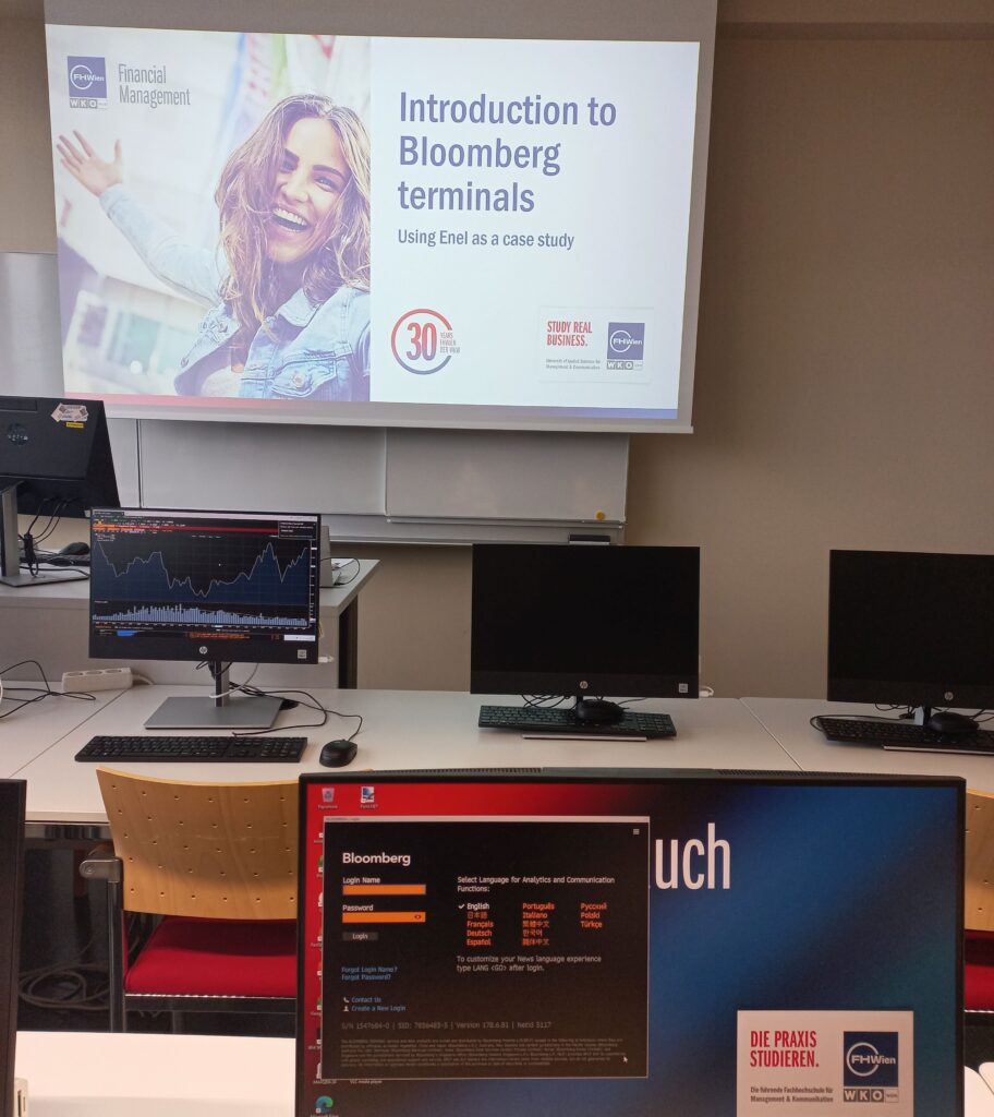 Im Zuge der Lehrveranstaltung Microeconomics of Competitiveness hatten die Studierenden des Masterstudiums Executive Management die Gelegenheit, intensiv mit den Bloomberg Terminals der FHWien der WKW zu arbeiten und so wertvolle Praxiserfahrungen zu sammeln. Denn dieses System ist eines der führenden Programme für Finanzinformationen, Marktanalysen und Wirtschaftsnachrichten.