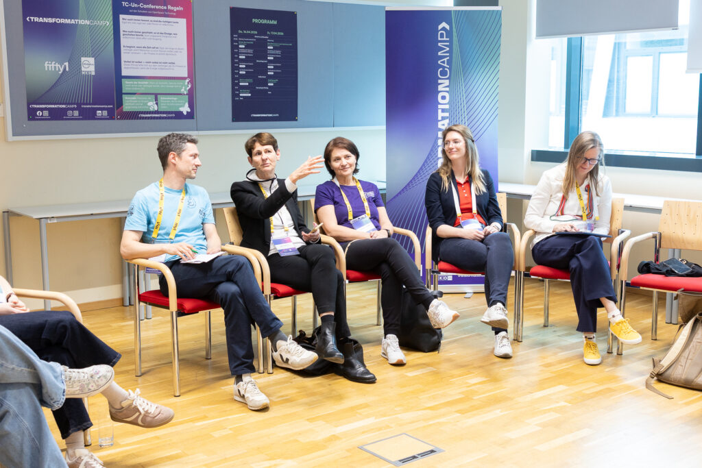 Das Transformation Camp ist bewusst als sogenannte Un-Conference gestaltet. Das bedeutet: Es gibt keine starre Agenda, keine festgelegten Inhalte – stattdessen bringen die Teilnehmenden ihre eigenen Fragen, Erfahrungen und Perspektiven ein. Sessions entstehen spontan oder werden gemeinsam entwickelt, so entsteht Wissenstransfer auf Augenhöhe.