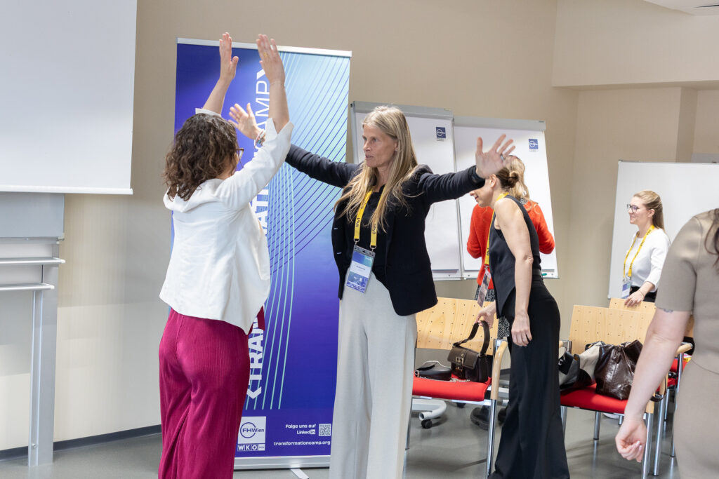 FHWien der WKW-Absolventin Kosima Kovar eröffnete das TransformationCamp mit einem zentralen Gedanken: Mutige Entscheidungen brauchen einen sicheren Rahmen. Denn auch das Scheitern ist essentiell und oft der Start von etwas Großem. Für sie ist Mut aber nicht nur der „große eine Schritt“, sondern die vielen kleinen und das einfache „machen“ – eine Erkenntnis, die viele Teilnehmende nachhaltig beschäftigte.