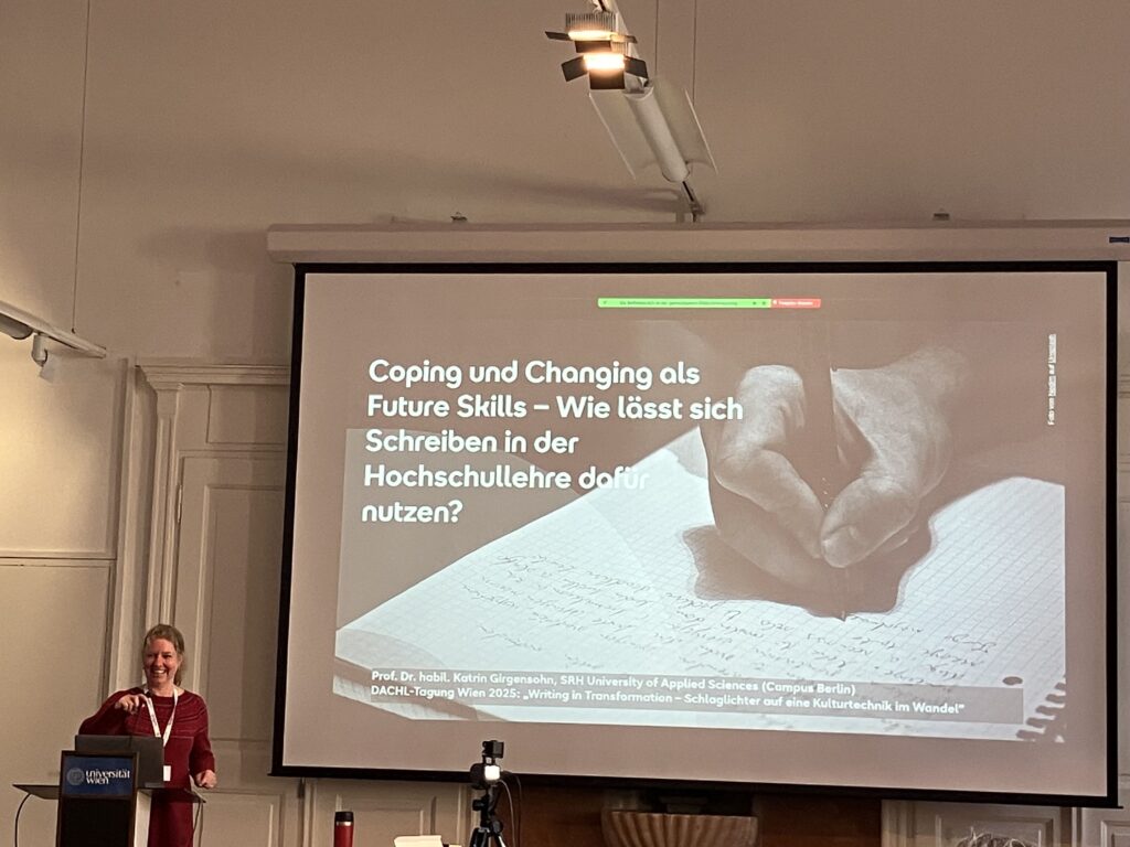 Über 100 Teilnehmer*innen aus Deutschland, der Schweiz, Luxemburg und Österreich nahmen – sowohl in Präsenz als auch online – an der Tagung am 6. und 7. November 2025, die in Kooperation mit der GewissS (Gesellschaft für wissenschaftliches Schreiben), dem CTL der Universität Wien und dem Writing Center der FHWien der WKW durchgeführt wurde, teil. Ziel der Veranstaltung war es, die Vielschichtigkeit der Transformationsprozesse rund um das wissenschaftliche Schreiben sichtbar zu machen – auf individueller, organisationaler und struktureller Ebene. Der Call for Participation bot bereits im Vorfeld einen Einblick in den thematischen Fokus der Tagung. Das Tagungsprogramm ist hier abrufbar.