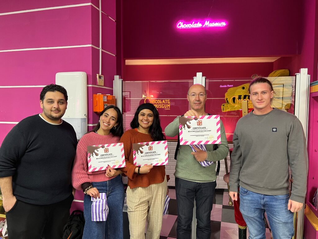 Im Rahmen der Vorlesung „Product Assessment and Product Development in the Context of an Urban DMO: The Case of Food Tourism in Vienna“ besuchten unsere Studierenden im Master-Studiengang Urban Tourism & Visitor Economy Management gemeinsam mit Prof. Dimitris Koutoulas das Schokolademuseum BO-Yo in Wien.