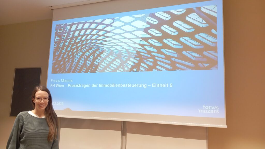 Im vierten Projekt standen Immobilien und ihre steuerlichen Besonderheiten im Mittelpunkt. Die Studierenden beschäftigten sich mit praxisnahen Themenstellungen von der Liebhaberei bis hin zur Strukturierung von Immobilientransaktionen. Die intensive Begleitung durch die Forvis Mazars ExpertInnen ermöglichte eine tiefgehende Auseinandersetzung mit einem Bereich, der sowohl rechtlich als auch steuerlich besonders dynamisch ist.