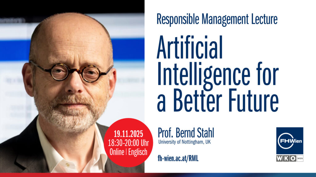 RML – Ideas for Better Business “Ethics of Artificial Intelligence” (WS2025/26) – Prof. Bernd Stahl | University of Nottingham, UK befasst sich mit „einer Ökosystem-Perspektive auf die Ethik der KI und neuer digitaler Technologien“.
